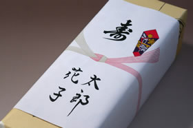 ご希望の場合オリジナルのお福さんのしをお付けいたします。一枚一枚女将の手書きになりますのでお時間がかかります。