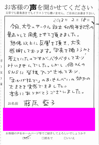 ■東京都 加藤陽子様よりのお声 |