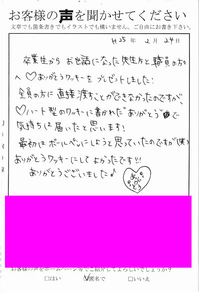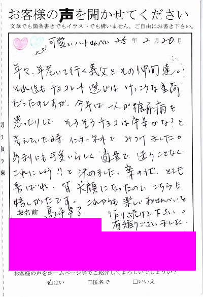 お客様からお寄せ頂いた嬉しいエピソードをご紹介します。