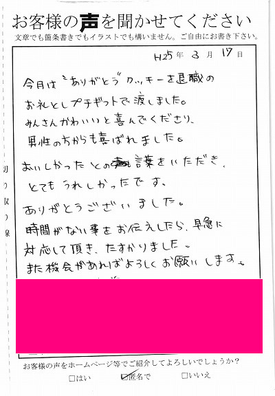 お客様からお寄せ頂いた嬉しいエピソードをご紹介します。
