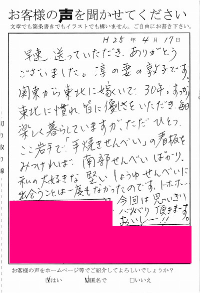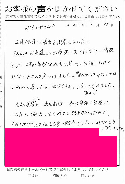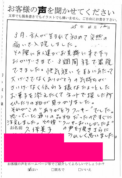 お客様からお寄せ頂いた嬉しいエピソードをご紹介します。