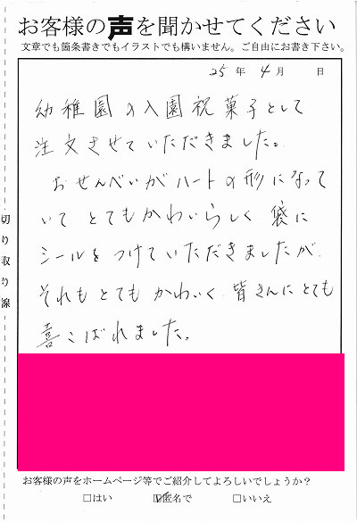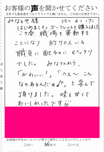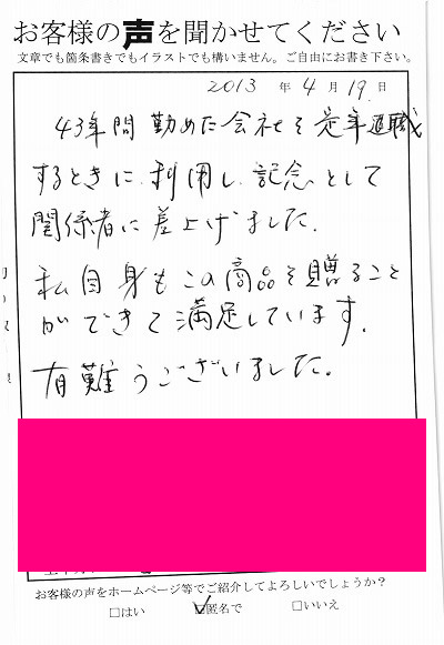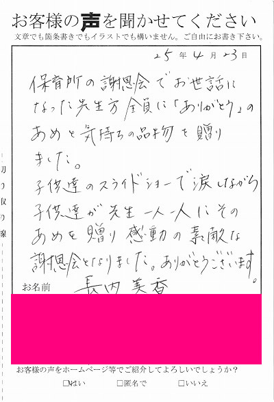 お客様からお寄せ頂いた嬉しいエピソードをご紹介します。