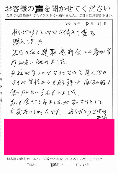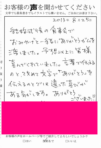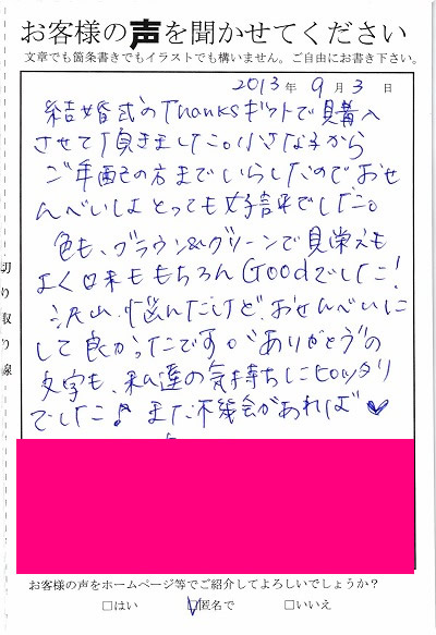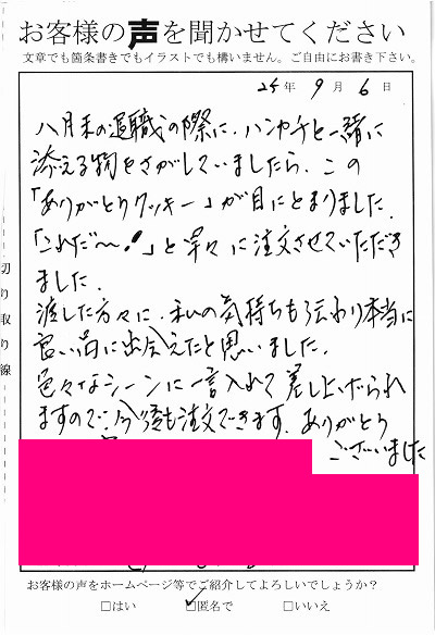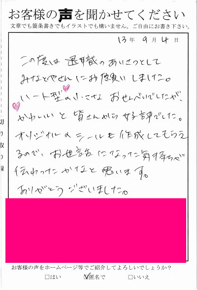 お客様からお寄せ頂いた嬉しいエピソードをご紹介します。