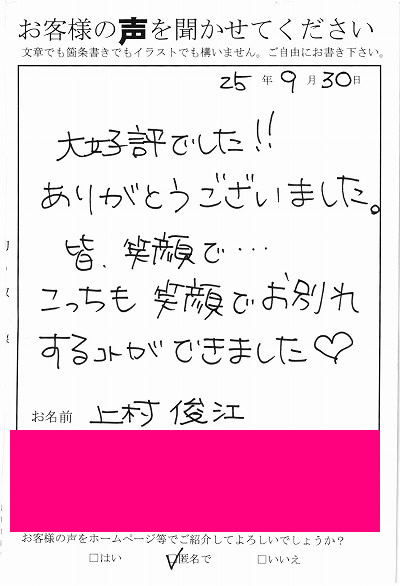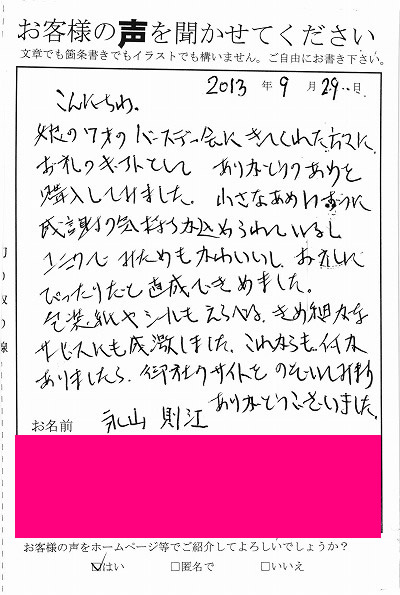 お客様からお寄せ頂いた嬉しいエピソードをご紹介します。