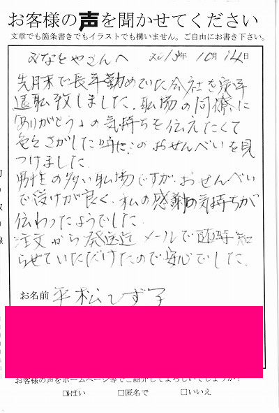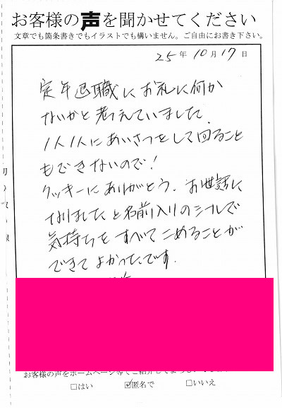 お客様からお寄せ頂いた嬉しいエピソードをご紹介します。