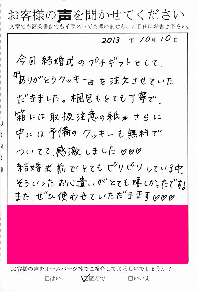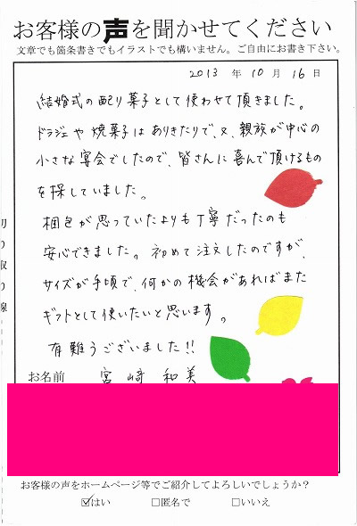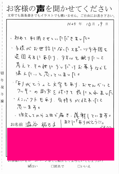 お客様からお寄せ頂いた嬉しいエピソードをご紹介します。