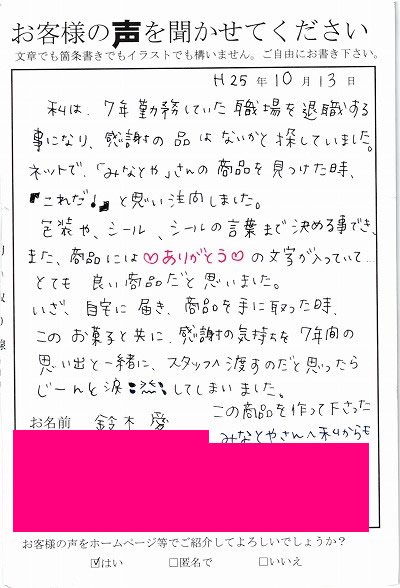 ■○○県 鈴木愛様よりのお声