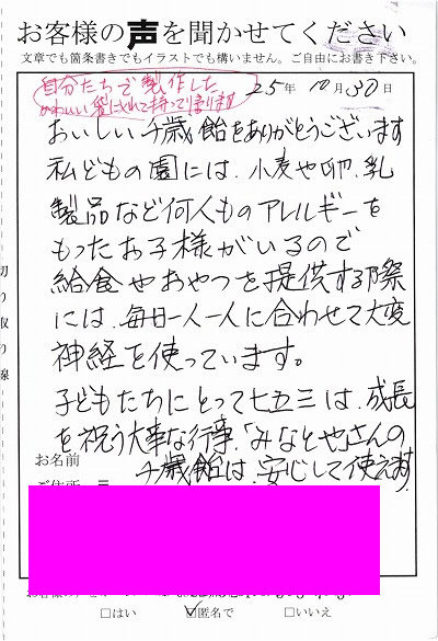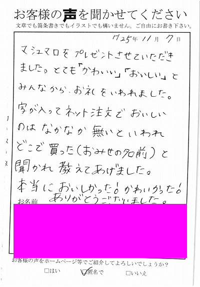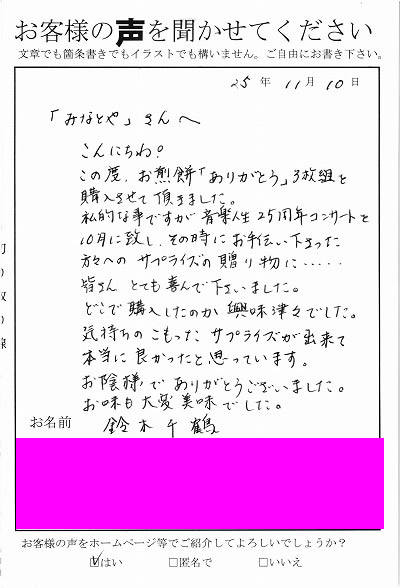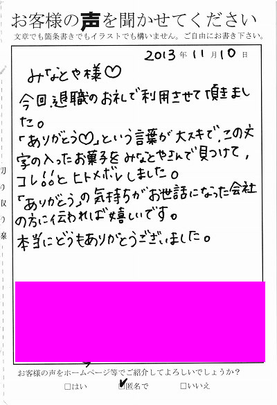 お客様からお寄せ頂いた嬉しいエピソードをご紹介します。