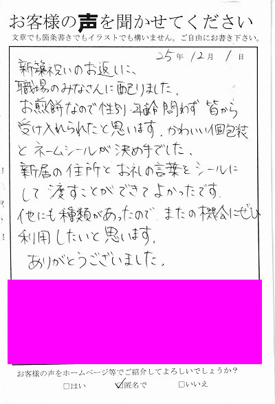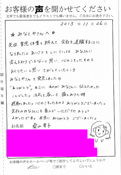 お客様からお寄せ頂いた嬉しいエピソードをご紹介します。
