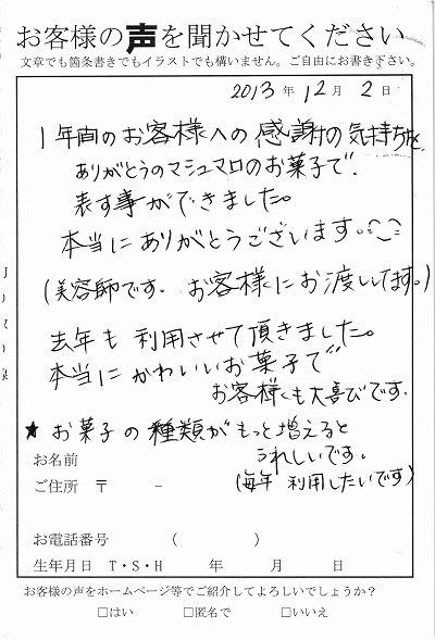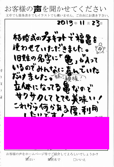 お客様からお寄せ頂いた嬉しいエピソードをご紹介します。
