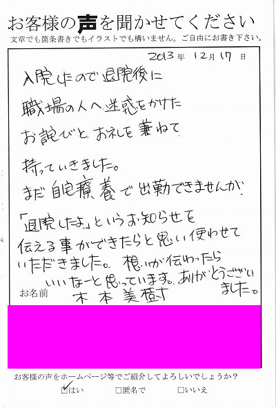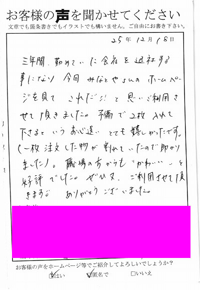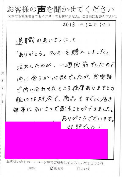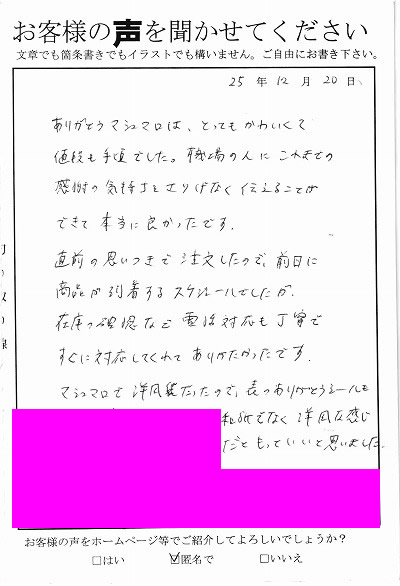 お客様からお寄せ頂いた嬉しいエピソードをご紹介します。