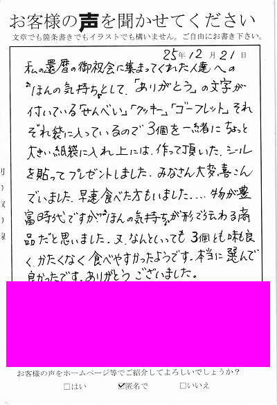 ■北海道 K様よりのお声