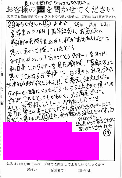 お客様からお寄せ頂いた嬉しいエピソードをご紹介します。