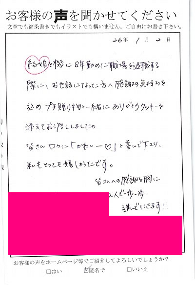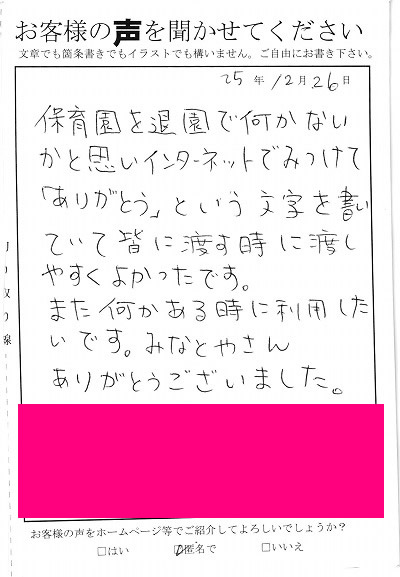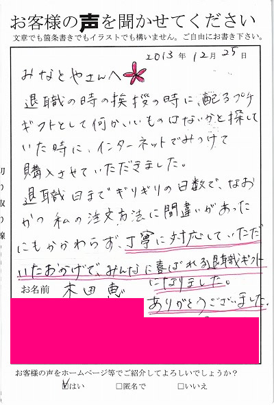 お客様からお寄せ頂いた嬉しいエピソードをご紹介します。