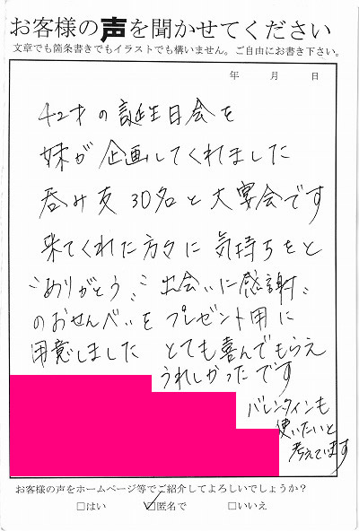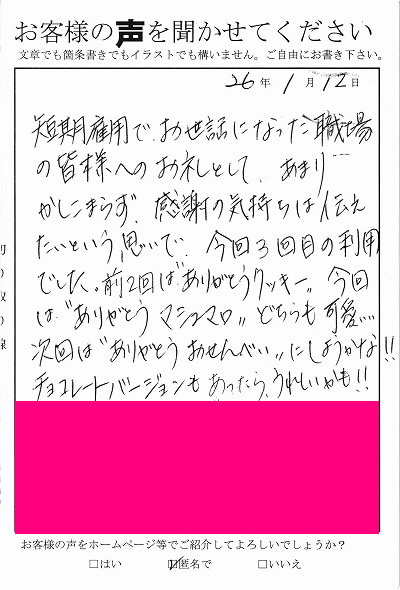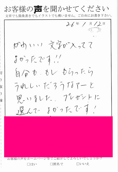 お客様からお寄せ頂いた嬉しいエピソードをご紹介します。