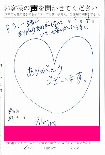 お客様からお寄せ頂いた嬉しいエピソードをご紹介します。