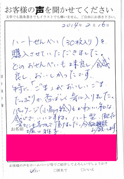 ご購入戴きました品物と一緒に写真をとって頂き、ご意見・ご感想をお寄せ頂けると幸いです 頂きましたご意見・お写真はサイト上に掲載させていただきます。ご了承下さいませ。 応募方法 ●ホームページでご応募の場合● こちらの フォームからお願いいたします。