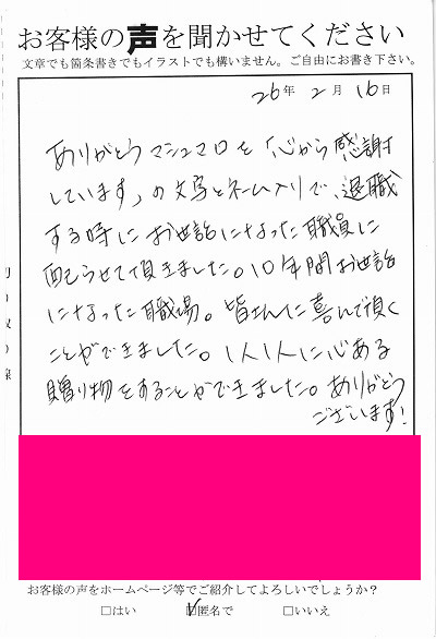 お客様からお寄せ頂いた嬉しいエピソードをご紹介します。