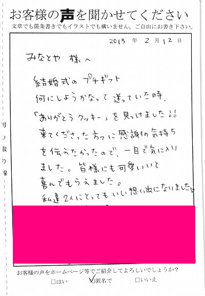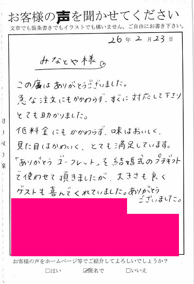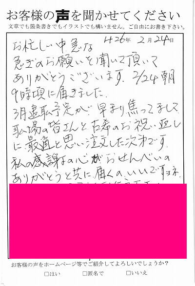 お客様からお寄せ頂いた嬉しいエピソードをご紹介します。