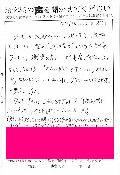 お客様からお寄せ頂いた嬉しいエピソードをご紹介します。