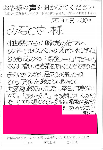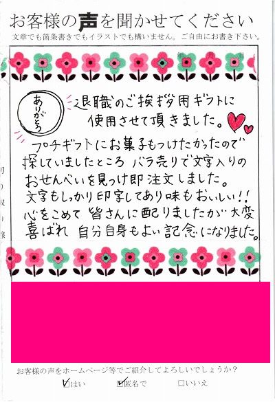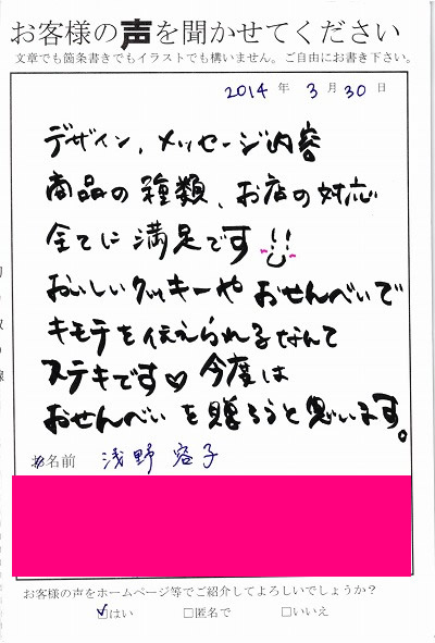 お客様からお寄せ頂いた嬉しいエピソードをご紹介します。