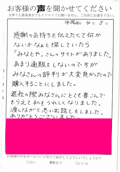 お客様からお寄せ頂いた嬉しいエピソードをご紹介します。