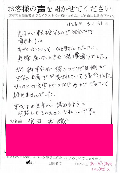 ご購入戴きました品物と一緒に写真をとって頂き、ご意見・ご感想をお寄せ頂けると幸いです 頂きましたご意見・お写真はサイト上に掲載させていただきます。ご了承下さいませ。 応募方法 ●ホームページでご応募の場合● こちらの フォームからお願いいたします。
