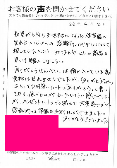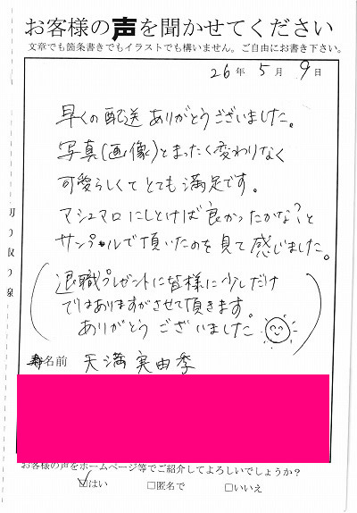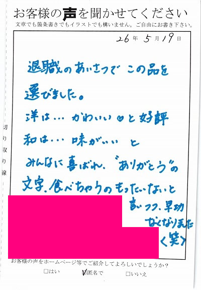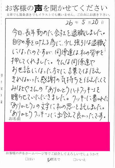 お客様からお寄せ頂いた嬉しいエピソードをご紹介します。