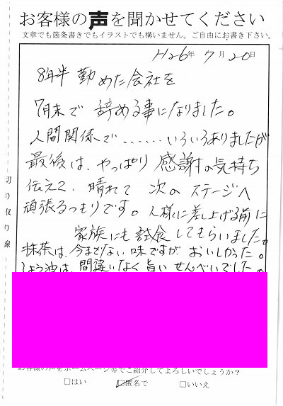 お客様からお寄せ頂いた嬉しいエピソードをご紹介します。