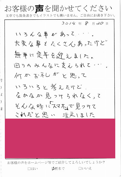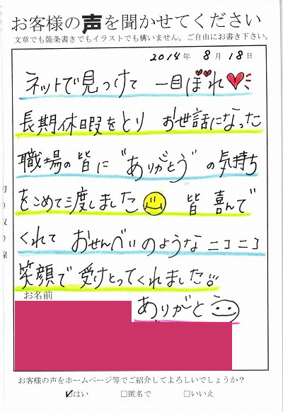 お客様からお寄せ頂いた嬉しいエピソードをご紹介します。