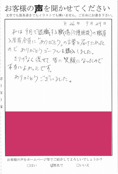 お客様からお寄せ頂いた嬉しいエピソードをご紹介します。
